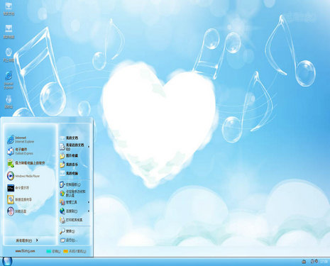 一款清爽夢(mèng)幻音符桌面主題xp下載.天空中潔白的云朵,匯成了一個(gè)個(gè)跳動(dòng)的音符,它晶瑩剔透,在陽(yáng)光的照耀下,顯得格外耀眼.