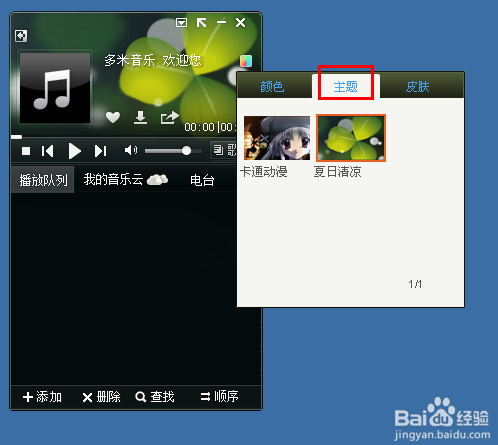 彈出的對(duì)話框中,我們選擇“顏色”,我們可以點(diǎn)擊下面的顏色來給多米音樂盒設(shè)置皮膚