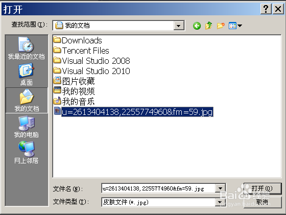 在彈出的文件選擇窗口中,我們選擇我們想要用來當(dāng)作皮膚的文件,當(dāng)然,這個(gè)是圖片文件