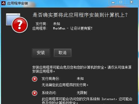 雙擊Markman.air文件之后,彈出如下所示的安裝提示框: