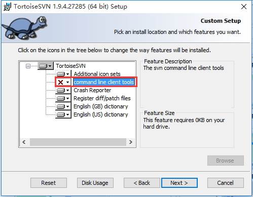 這里我們把command line client tools也裝上,點(diǎn)擊它,選擇Entire feature will be installed on local hard drive