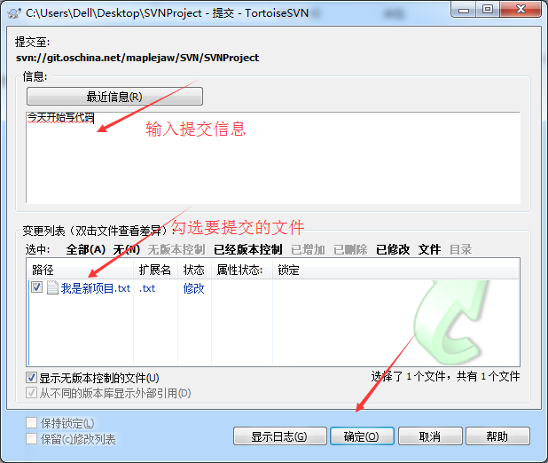 務(wù)必記得輸入提交信息(雖然不輸入也能提交),提交信息可以方便日后查看。