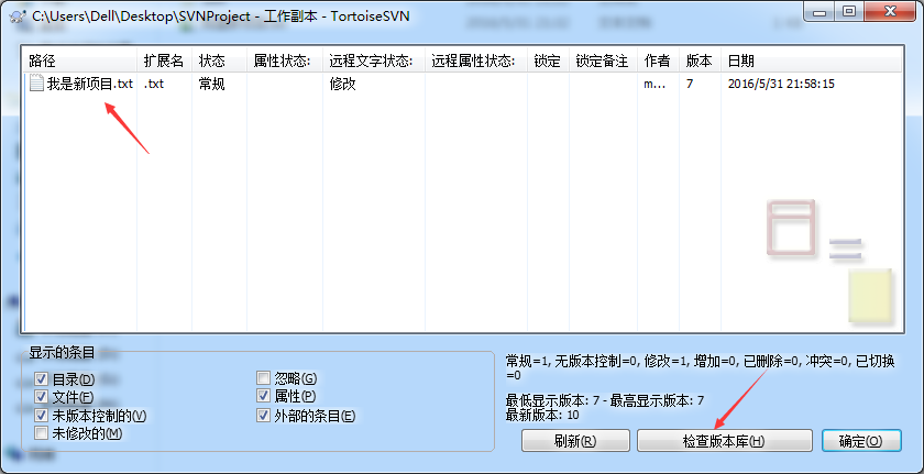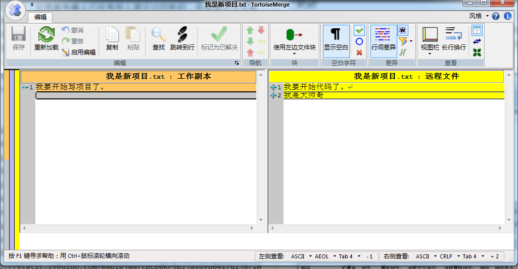 假如我現(xiàn)在在“我是新項(xiàng)目.txt”中加了一行字,然后保存。