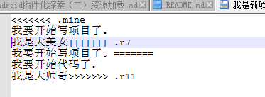 <<<<<<.mine到====表示你的代碼,其他表示服務(wù)器的代碼。你只需改成你想要的。