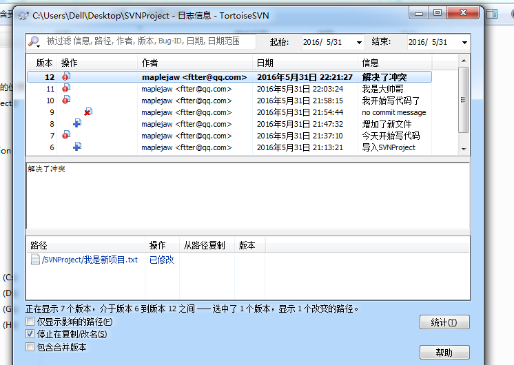 可以看出誰誰誰,什么時(shí)間,干了什么事。最后那一列信息是自己提交的時(shí)候?qū)懙?。建議大家提交時(shí)務(wù)必要填寫提交信息,這樣別人一看就知道你干了什么。提交信息對(duì)于自己也是有好處的,時(shí)間長(zhǎng)了也能看到當(dāng)初做了什么。
