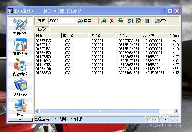 為什么用金山游俠搜索到最后總是剩幾個(gè)數(shù)據(jù)再也排除不了了?很多游戲都是這樣,好幾個(gè)值是:顯示值,計(jì)算值等等,而且這個(gè)顯示值是沒(méi)有用的,改了也不會(huì)起作用,要改計(jì)算值才可以——解決辦法,把不同的值改成不同的數(shù)字,最好多差開(kāi)點(diǎn)(不要鎖定),回去一看就知道是哪個(gè)了,如果還沒(méi)法,打個(gè)怪,看經(jīng)驗(yàn)變化是以誰(shuí)為基數(shù)累的,就可以了。