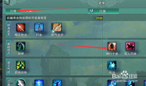 點(diǎn)擊江湖武學(xué),然后選擇神行千里技能。