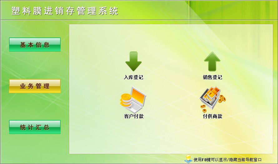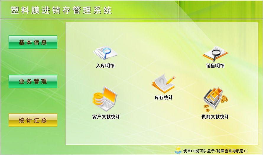 宏達(dá)塑料膜進(jìn)銷存管理工具是一款幫助企業(yè)對(duì)塑料膜庫存進(jìn)行管理的軟件,你可以在這款軟件上查到自己企業(yè)里塑料膜的存貨量和銷售量,從而保證供求平衡。