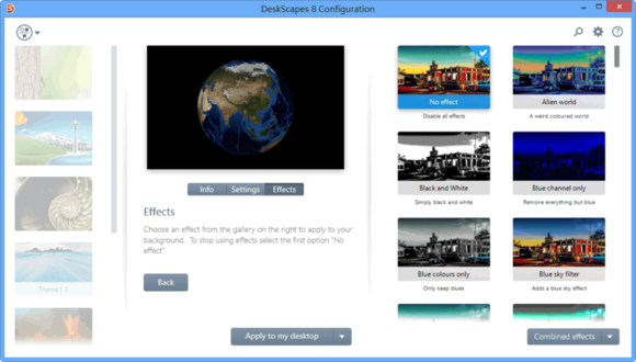 用戶界面直觀且易于使用,您可以在幾分鐘內(nèi)創(chuàng)建外觀漂亮的自定義桌面設(shè)計(jì)。 始終存在的預(yù)覽可幫助您在將效果應(yīng)用于新墻紙之前查看桌面的外觀。