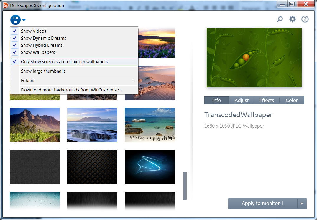 DeskScapes功能提供可以選擇在每個(gè)顯示器上使用不同的壁紙,或者在多個(gè)顯示器上拉伸視頻和靜態(tài)壁紙的功能。
