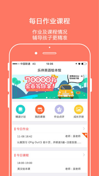 樂伴英語app是一款提供教學(xué)管理服務(wù)的手機(jī)軟件。樂伴英語可以方便教師管理教育事業(yè),通過樂伴英語app,您可以在線上給學(xué)生布置作業(yè),檢查作業(yè),提升工作效率。還能隨時與學(xué)生交流,解答疑問。樂伴英語app非常適合英語培訓(xùn)機(jī)構(gòu)!