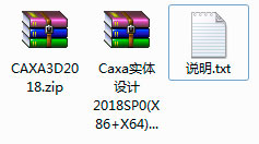 1、下載解壓,得到caxa 3d實(shí)體設(shè)計(jì)2018原程序和破解補(bǔ)丁文件;