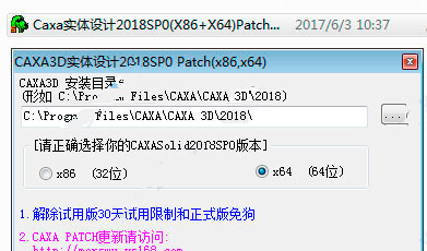 將軟件包中的caxa 3d實(shí)體設(shè)計(jì)2018破解補(bǔ)丁打開(kāi),選擇你安裝的32位或64位版本,點(diǎn)擊go按紐;