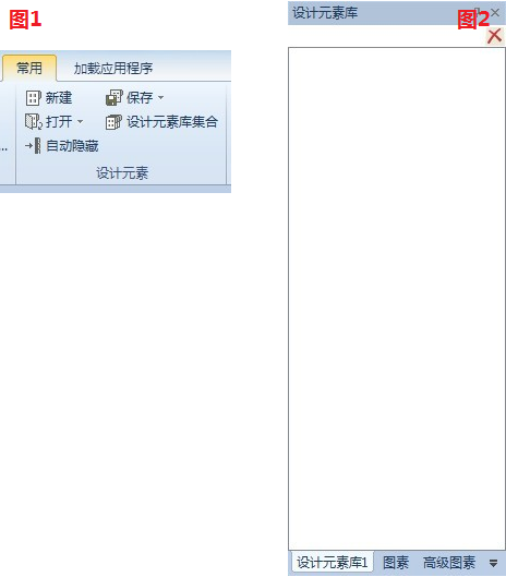 第一, 拾取“常用”菜單欄下面的“新建”按鈕如圖1,當(dāng)我們點(diǎn)擊以后會(huì)在原我們右邊的設(shè)計(jì)元素庫(kù)處彈出一個(gè)空白的設(shè)計(jì)元素庫(kù)如圖2。