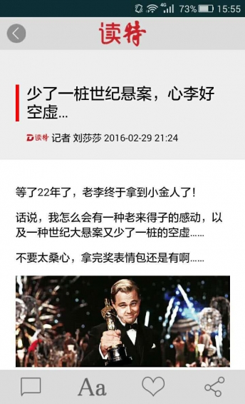 “讀特”新聞客戶端是一款新聞+服務(wù)類APP?!白x特”的內(nèi)容設(shè)置體現(xiàn)特區(qū)獨(dú)有特色。特聞頻道是指特別新聞、特區(qū)新聞,提供深度報道、獨(dú)家分析和原創(chuàng)內(nèi)容;深圳頻道提供深圳特區(qū)最鮮活、最前沿的改革、開放、創(chuàng)新觀念以及科技、教育、文化等新聞信息;財?shù)李l道提供理財信息與投資建議;港臺頻道提供最新港澳臺新聞、深圳與港澳臺合作及市民工作、學(xué)習(xí)往來、港澳臺文化動態(tài);樂活頻道提供飲食、娛樂、學(xué)習(xí)、創(chuàng)業(yè)、藝術(shù)欣賞和最潮的品牌、時尚和購物信息;視聽頻道提供聽新聞故事、看新聞現(xiàn)場和微電影、微視頻、微游戲等。此外,“讀特”新聞客戶端還可設(shè)置個性化需求頻道。具有問政、曬圖、聲音和評論等互動功能,是企業(yè)利用互聯(lián)網(wǎng)的人氣聚集財氣的重要渠道,是個人工作學(xué)習(xí)和娛樂生活可信賴的服務(wù)商。