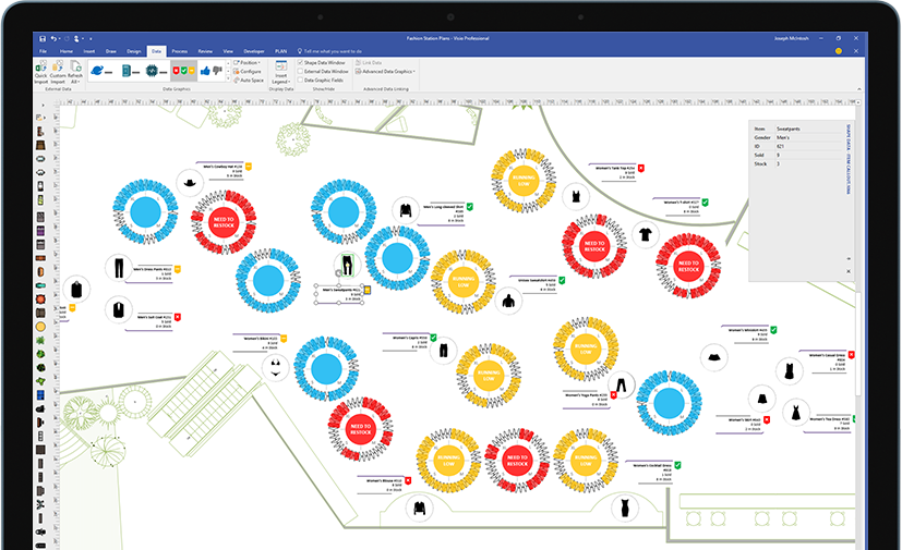 使用實(shí)際可視化對象傳達(dá)實(shí)時數(shù)據(jù)。在 Visio 中或者利用 Office 365* 應(yīng)用和服務(wù),將形狀和圖表鏈接到常用源文件,并通過應(yīng)用的形狀格式設(shè)置,自動更新以反映基礎(chǔ)數(shù)據(jù)更改。