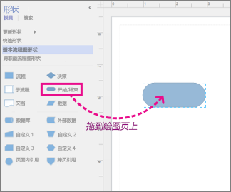 1.將“開始/結(jié)束”形狀拖至繪圖頁上,然后松開鼠標(biāo)按鈕。