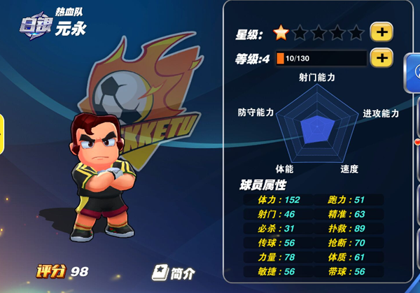 體質(zhì):體質(zhì)值越高,被球或者力量型技能攻擊時(shí)造成的傷害越低。