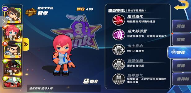 在“球員信息”界面中,點(diǎn)擊角色信息中的“特性”分頁(yè),點(diǎn)擊可解鎖特性,花費(fèi)相應(yīng)的道具即可解鎖。