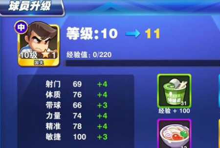 大碗拉面:升級(jí)球員,可為球員提供300點(diǎn)經(jīng)驗(yàn)
