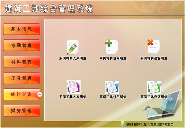 《建筑工地綜合管理系統(tǒng)》是針對建筑工地多工地管理所需求而精心設計的一套高級版管理軟件,此軟件具有極佳的人機操作界面、極高的運行效率。主要功能:工地信息、考勤管理、材料管理、工具管理等功能。本管理系統(tǒng)多處具有快速輔助錄入功能,操作簡單,易學、易用;處理功能高效強大,是協(xié)助您的好幫手!