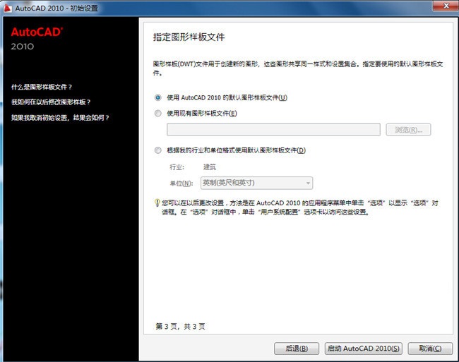 3、選擇默認(rèn),點(diǎn)擊啟動(dòng)cad2010即可。