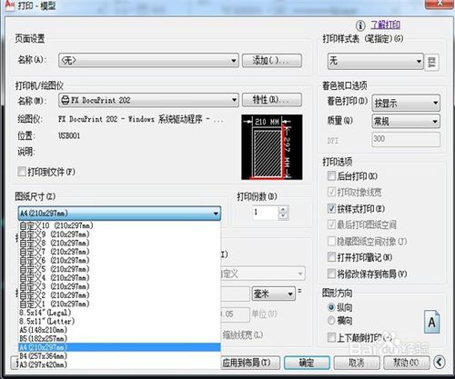 5、在"打印-模型"窗口中,在“圖紙尺寸” 里面找到我們需要打印的圖紙大小。