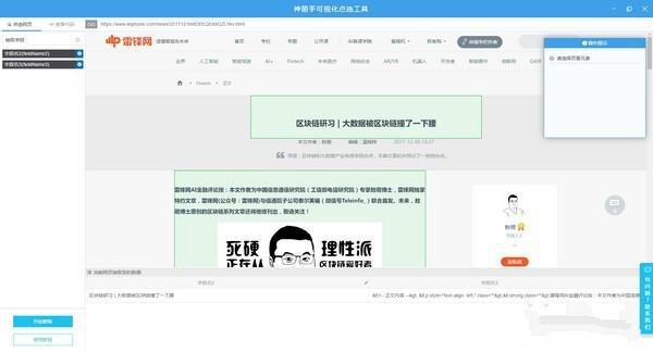 然后,在顯示的網(wǎng)頁內(nèi)容中,點擊選擇要采集的數(shù)據(jù),比如選擇采集文章的標題和內(nèi)容:
