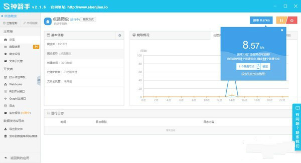 完成點選后,點擊 開始爬取。稍等一會,爬蟲就會自動開始運行了