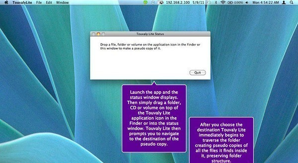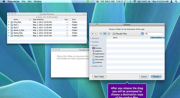 Touvaly Mac版是一個新穎的拖放實用程序,可以幫助你偽拷貝所有的文件、文件夾、CD和體積并保存全部文件夾結(jié)構(gòu)。使用Touvaly Mac版以創(chuàng)建一個使用空間非常小文件集合的虛擬目錄。你可以雙擊一個偽副本,Touvaly將打開原來,在該項目的相應(yīng)的應(yīng)用程序。您可以搜索或瀏覽偽文件目錄由他們的“外部”的文件屬性,就好像他們是真正的文件。