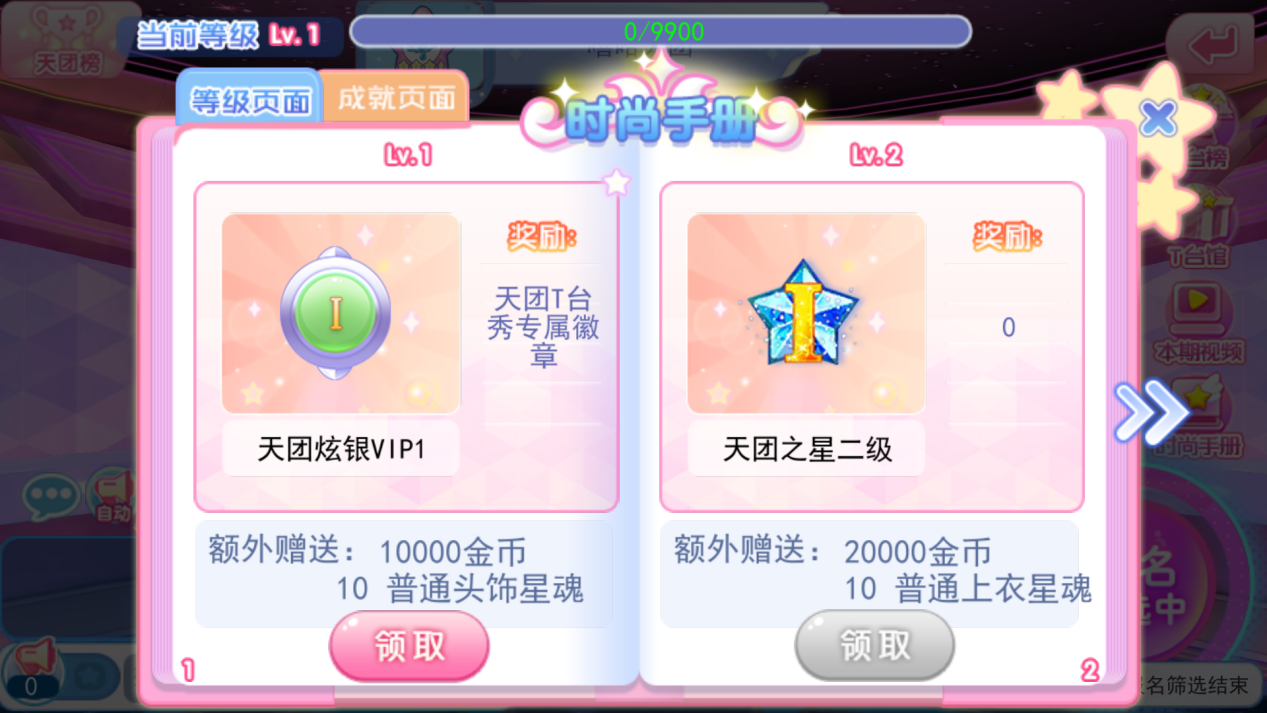 通過參加T臺秀累計(jì)的評分,提示時(shí)尚等級來解鎖天團(tuán)徽章。