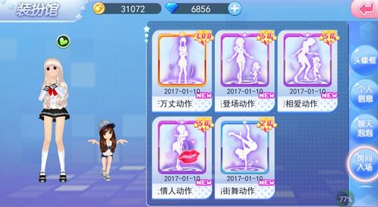 3,演出的動作,場景,謝幕可通過T臺館購買,天團(tuán)內(nèi)任一成員擁有某個(gè)道具,其他成員都可使用。