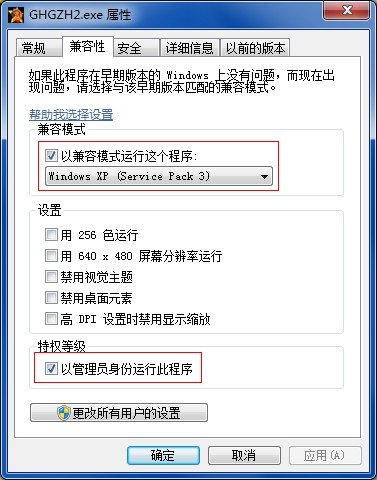 2、勾選“以兼容性模式運行這個程序”,選擇“Windows XP (Service Pack 3)”;然后再勾選“以管理員身份運行此程序”