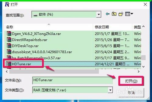 2、在R打開的窗口,找到我們需要修復(fù)的壓縮文件并左鍵點擊,再點擊:打開;