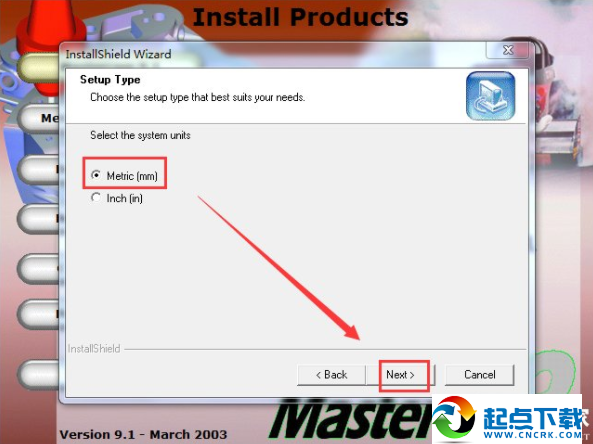 7.選擇尺寸為公制,然后點(diǎn)擊下一步