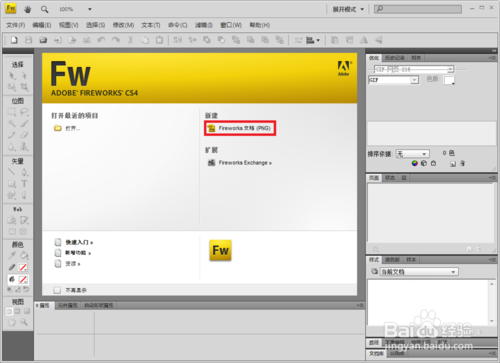 首先我們打開Fireworks軟件后彈出如下圖所示頁面。