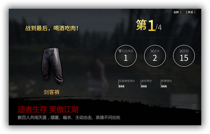 如果玩家扮演的俠客在切磋中失敗,那么就失去了這場(chǎng)競(jìng)技的資格,最終獲得勝利的只有一個(gè)玩家或者同一個(gè)隊(duì)伍的玩家。
