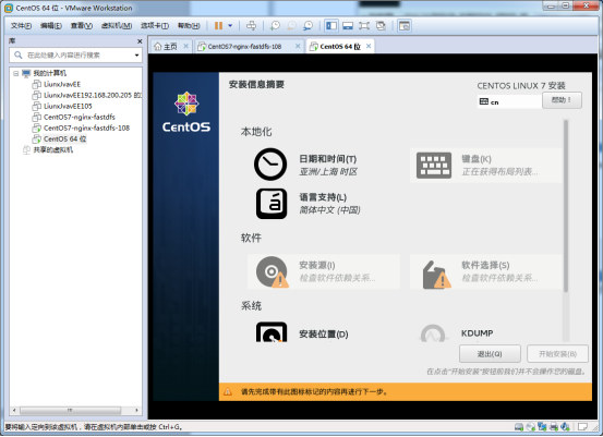 我們先來看一哈安裝源,安裝源一般是自動檢測的。在我們選擇鏡像文件的時候就已經(jīng)確定的安裝源,自動檢測一會就沒有上述的警告了,這個地方需要改的是軟件選擇。