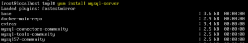 輸入“yum install mysql-server”并按回車鍵確定即可開始安裝。 注意:因上一步已添加新的YUM存儲庫,故可直接安裝