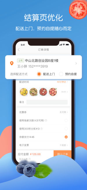 1. 90分鐘極速達(dá),可指定配送時間段;2. 體驗式門店掃碼下單,立即自提或配送到家;