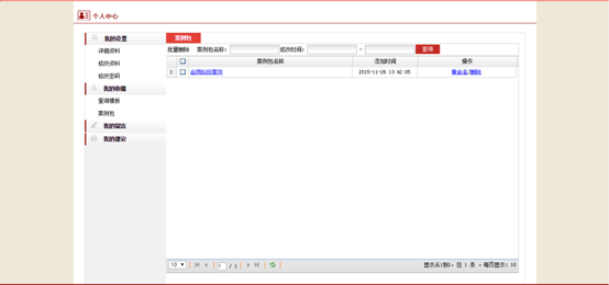 登錄用戶可以在個人中心-我的收藏-案例包中可以實現(xiàn)對案例包的查詢、刪除、名稱修改。