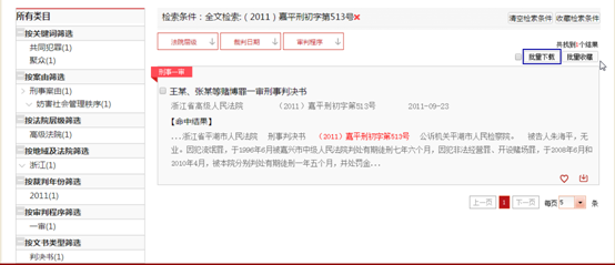 、在個人中心-我的收藏-案例包-文書列表頁中點擊“下載”按鈕,可以實現(xiàn)單篇裁判文書下載。 2、批量下載