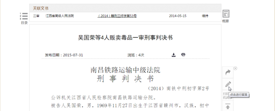 1、在裁判文書列表中,除展現(xiàn)符合檢索條件的裁判文書外,還有關聯(lián)文書以及分類引導樹的顯示。