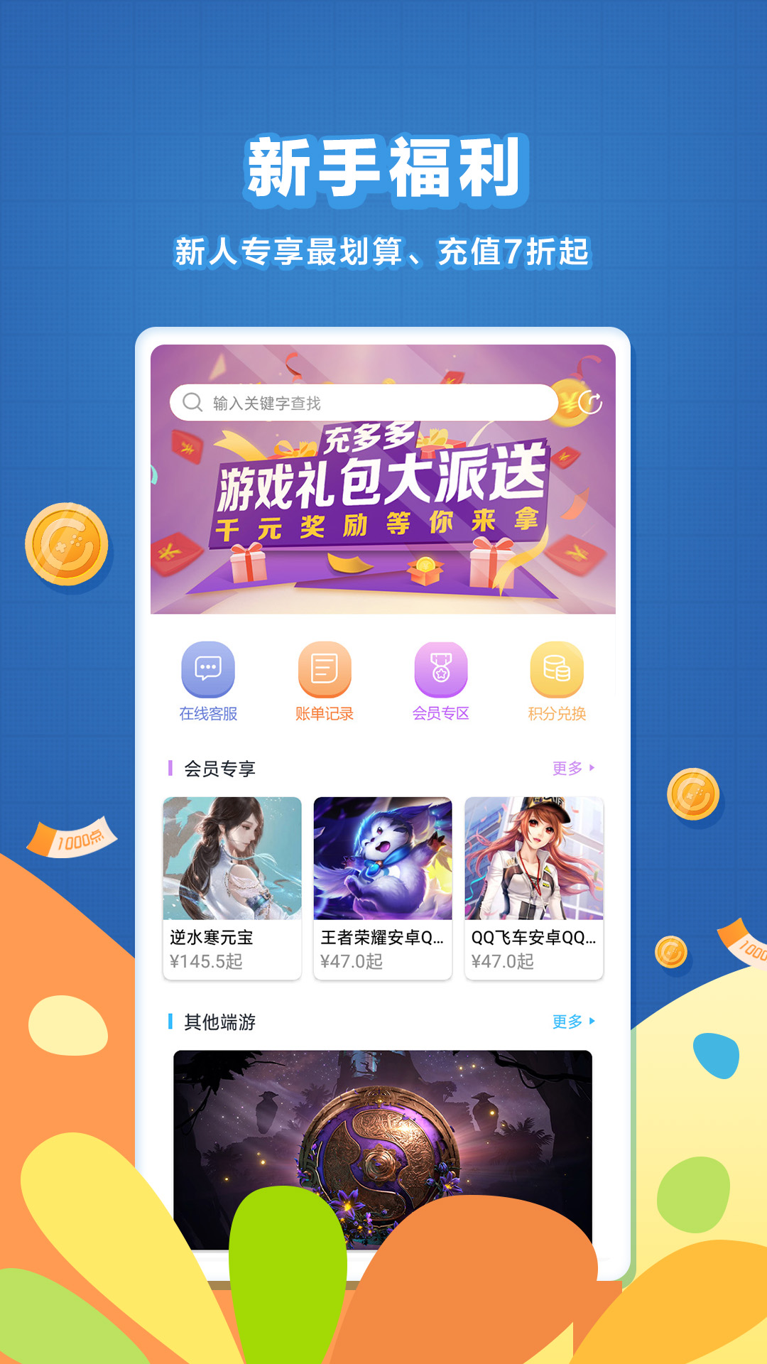 充多多app是一款游戲道具售賣的app,充多多app平臺(tái)內(nèi)匯聚了大部分網(wǎng)絡(luò)游戲的游戲道具。外充多多app還有各視頻,直播平臺(tái)的會(huì)員,創(chuàng)新性提出先玩后付的玩法,帶給玩家不一樣的游戲體驗(yàn)