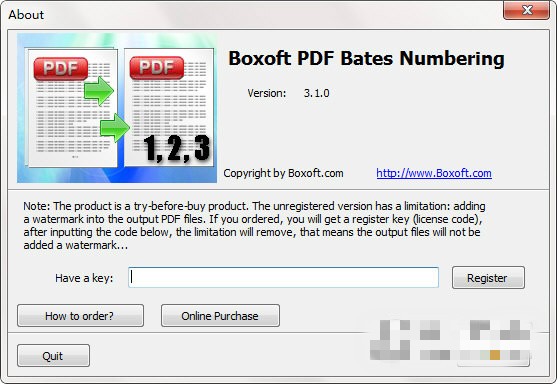 1、批量處理Boxoft PDF Bates Numbering 沖壓PDF與在所有PDF文件的連續(xù)系列中的唯一貝茨數(shù),您可以添加多個(gè)PDF文件與添加文件夾選項(xiàng),以減少您的時(shí)間和精力。