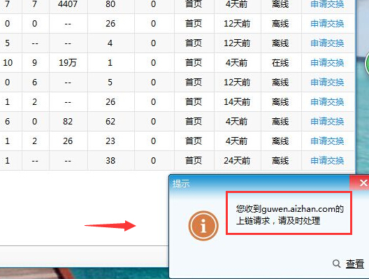 2. 待對方也確認(rèn)上鏈后、就會收到一個提示窗口為:恭喜、你的網(wǎng)站xxxxxx已成功交換到一個鏈接xxxxxx、此時說明雙方都已經(jīng)成功確認(rèn)上鏈。如下圖
