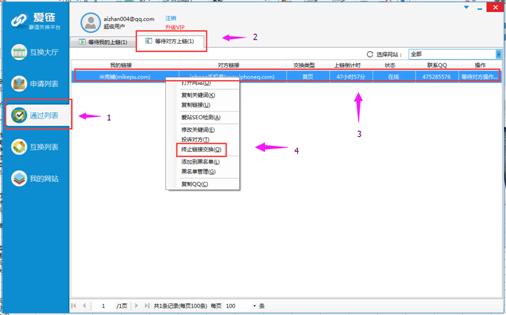 從你確認(rèn)上鏈開始、如果對方長時間沒有確認(rèn)上鏈時、你可以終止鏈接交換、終止后在“等待對方上鏈”處、對方的友情鏈接就會自動刪除掉、具體操作如下: