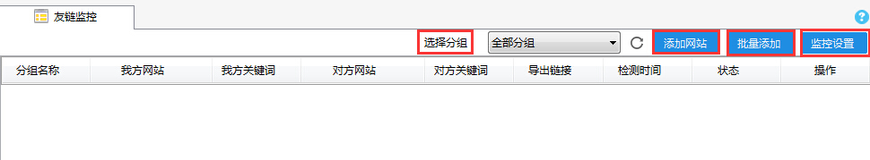 一、進(jìn)入友鏈監(jiān)控功能,其中有“添加網(wǎng)站”、“批量添加”、“監(jiān)控設(shè)置”等功能,下面首先為大家講述“添加網(wǎng)站”功能。