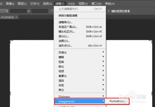 在濾鏡下拉窗口中就可以看到Portraiture濾鏡了。