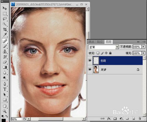 返回PS繼續(xù)修整。新建一空白去斑層,用污點(diǎn)修復(fù)畫筆去掉大的斑點(diǎn)。